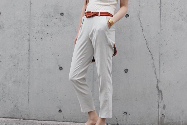 リネン混のサラッと感が今年らしい♡ 白とリネンの組み合わせはぬけ感を感じさせてくれる。 テーパードパンツとセンターププレスが備わった超美脚効果が期待できちゃうパンツ。