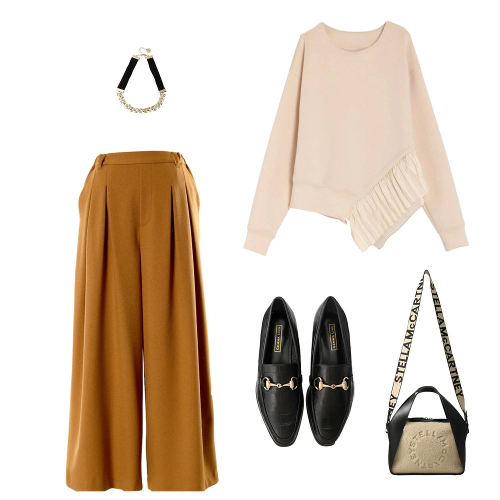 「こっくりマスタード」今年っぽさを演出できるスカートライクなパンツ